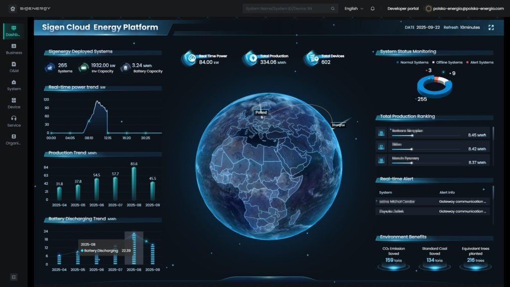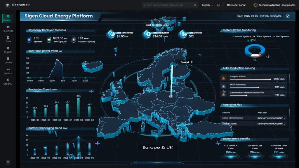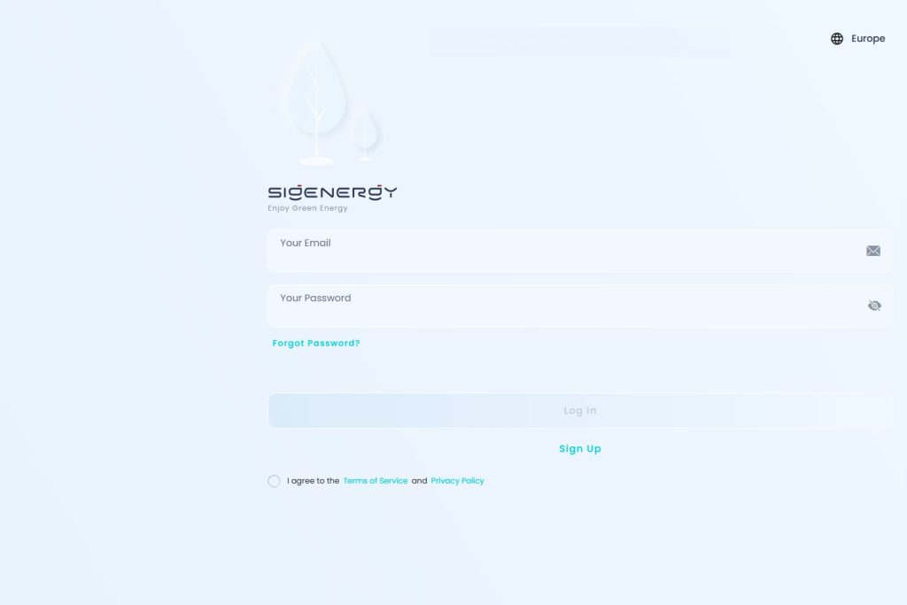Aby korzystać z monitoringu instalacji fotowoltaicznej z falownikiem SIGENERGY, instalator musi udostępnić użytkownikowi konto w systemie Sigenergy mySigen. W tym celu podaje adres e-mail właściciela instalacji PV.