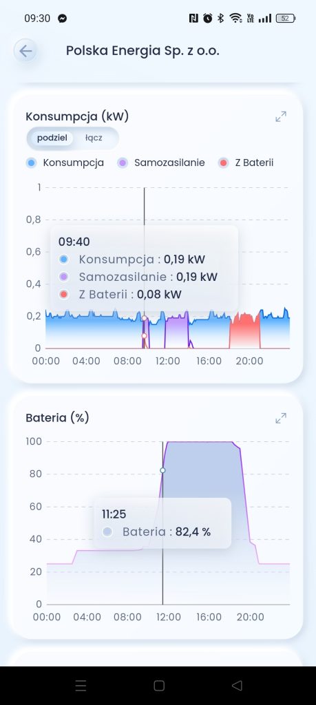 Przykładowe okna aplikacja mySigen Sigenergy na ekranie smartfona
